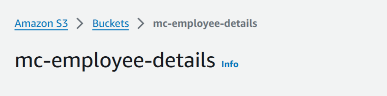 - bucketName: Set to mc-employee-details, which is the name of your S3 bucket.