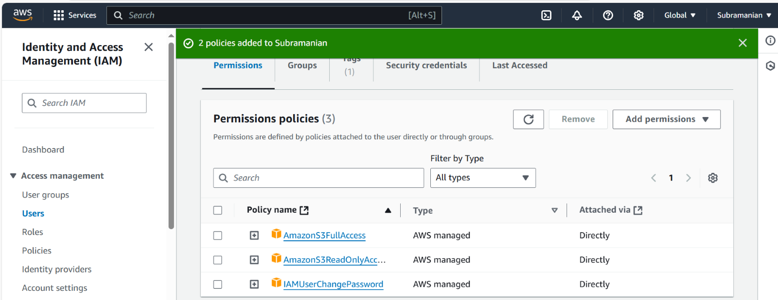 - Log in to the AWS Management Console and go to IAM (Identity and Access Management).