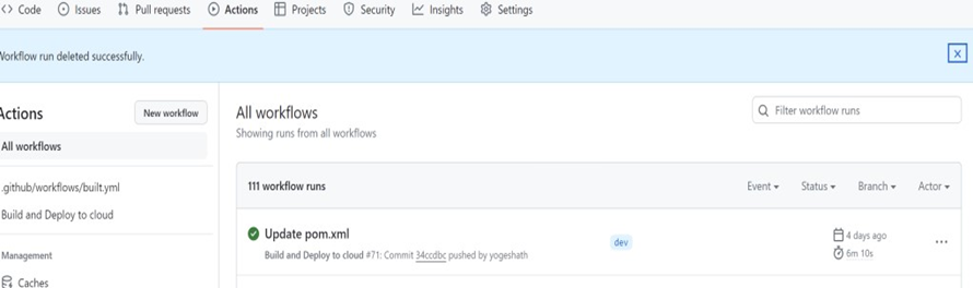 Step 7: Now Go to Actions and you'll see runs from all workflows