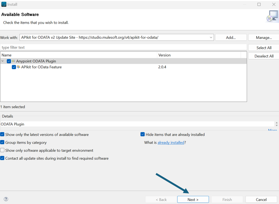 5. Select Anypoint ODATA Plugin and Next.