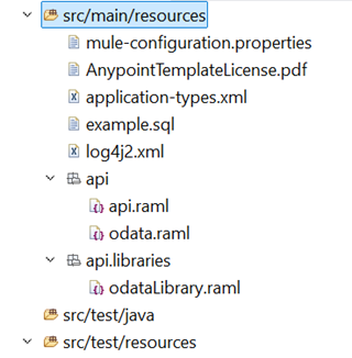 4. The Odata extension will download the necessary files api.raml and odataLibrary.raml file for API implementation. Generated odataLibrary.raml file will have the below contents where datatypes and query parameters are defined.