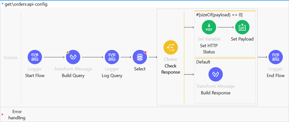 - You need to configure a Database Connector to connect to your database (e.g., MySQL, SQL Server) and retrieve order data.
