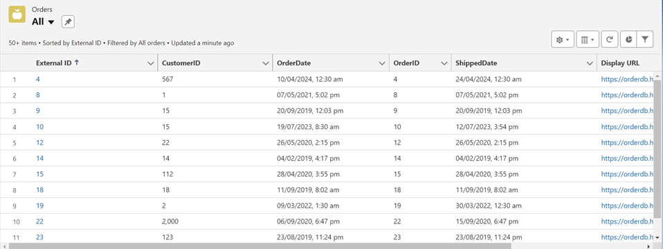 - You should now be able to interact with the external data as if it were stored natively in Salesforce.