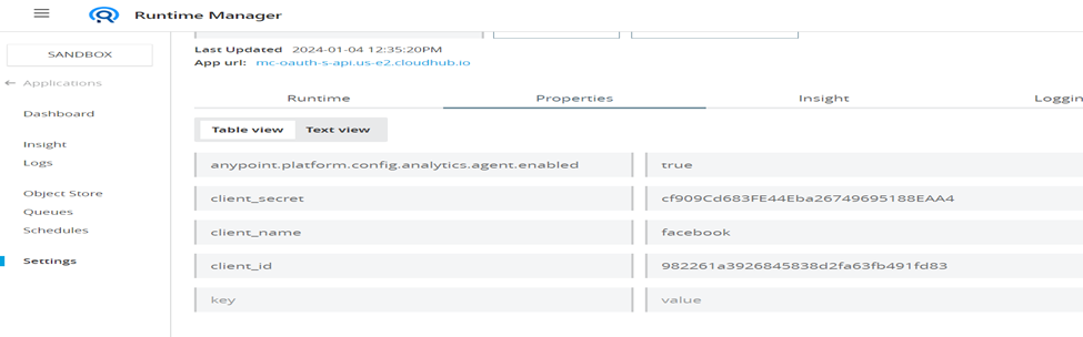 - Add client_id and client_secret to properties in runtime manager from api manager.