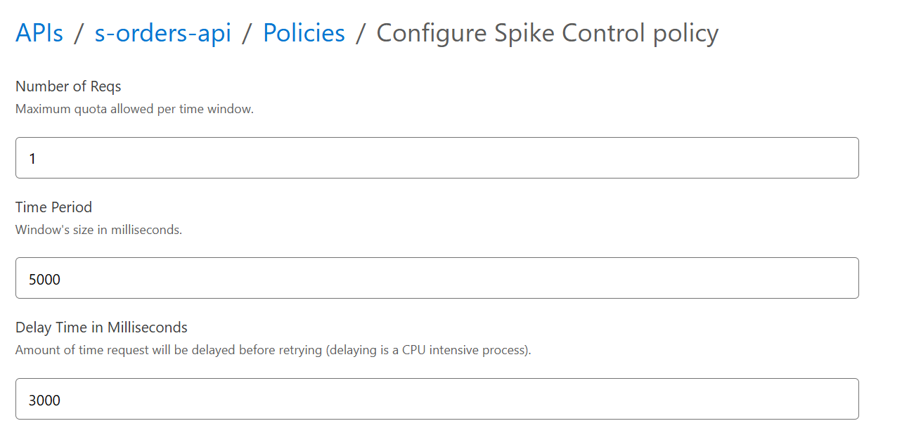 - If not quota available, then Spike Control policy allows requests to be queued for processing later. Queuing the request regulates spikes in traffic.