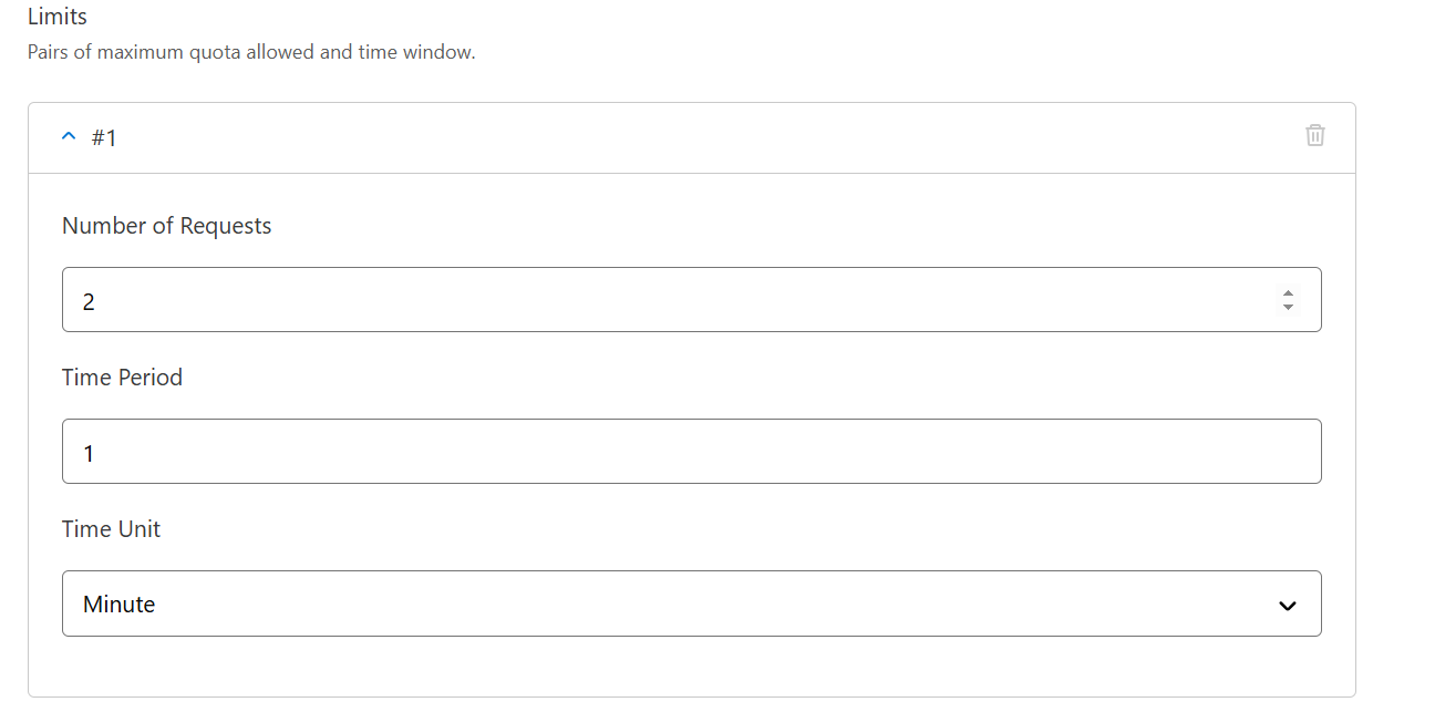 - Here we can create the group of the request using an identifier. So each group of request will have one quota in their time window. Configure Quota to all request.