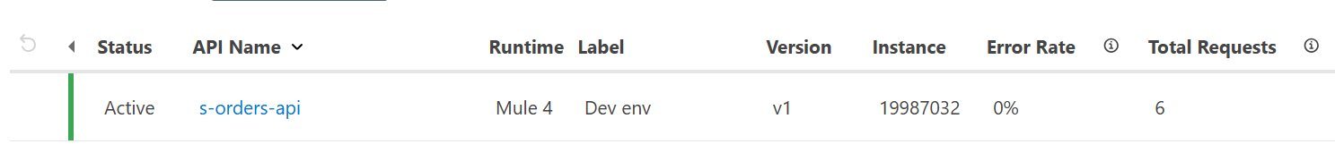 - Added the order api in Api Manager here using auto discovery We paired the Implemented application from Runtime Manager. The api status is Active