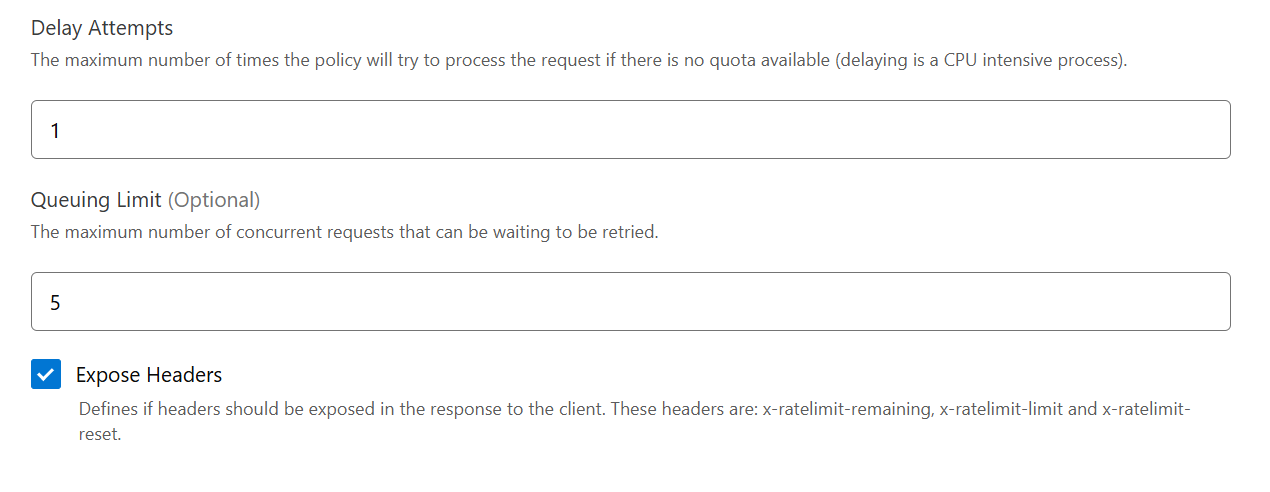- Setting Queuing limit I will assign one that means only one request can be queued once there is no quota available