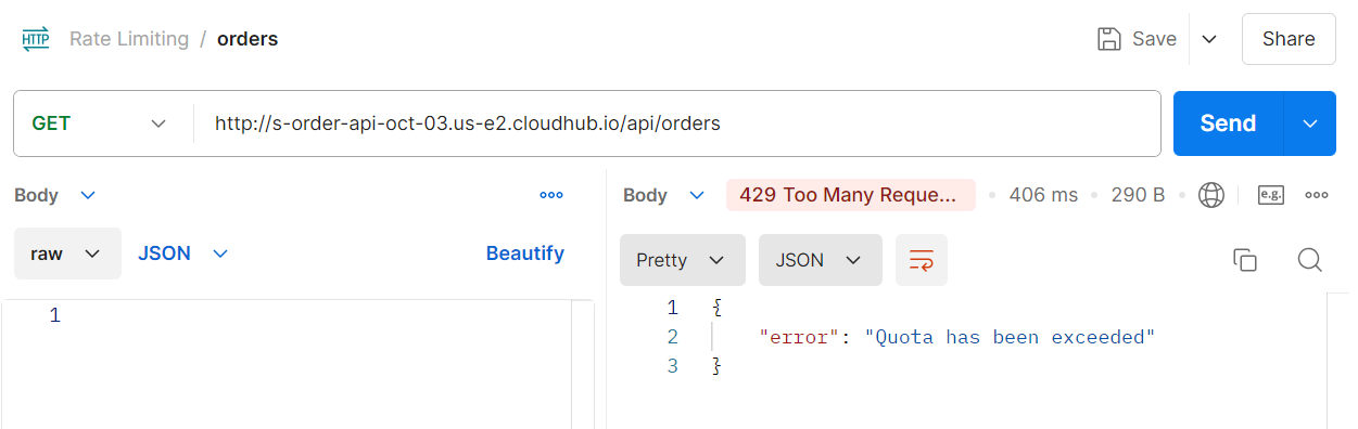 - While invoking it one more time. We got the error the Quota has been exceeded. Because we called it third time within a minute. Once its reset we can get the result again.