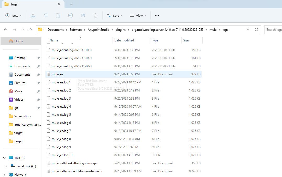 Note: You can see your logs in the given location. In the \mule folder, all the logs for the specific project are store in mule.ee file.