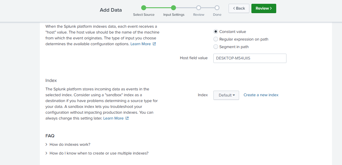 Configure Setup in Splunk