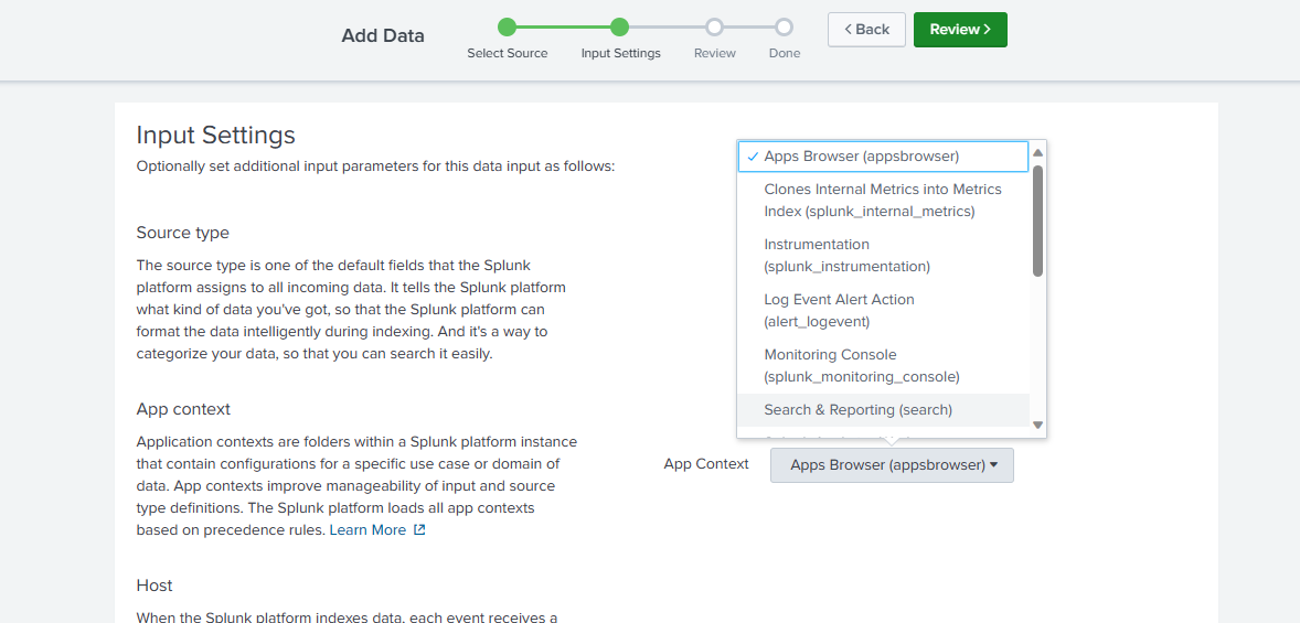 -> Click on App Context choose Search & Reporting