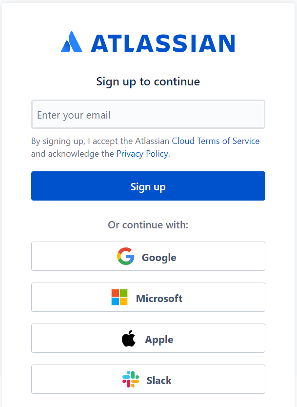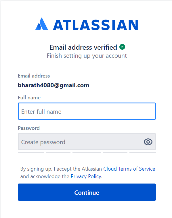 Step1: To create a JIRA Connector account, begin by registering at https://id.atlassian.com/signup enter Email and click on sign up.