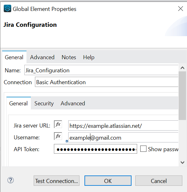 Configure the JIRA Connector with Basic Authentication by providing the Username, API Token and JIRA Server URL. This setup ensures secure access to JIRA resources for seamless integration.