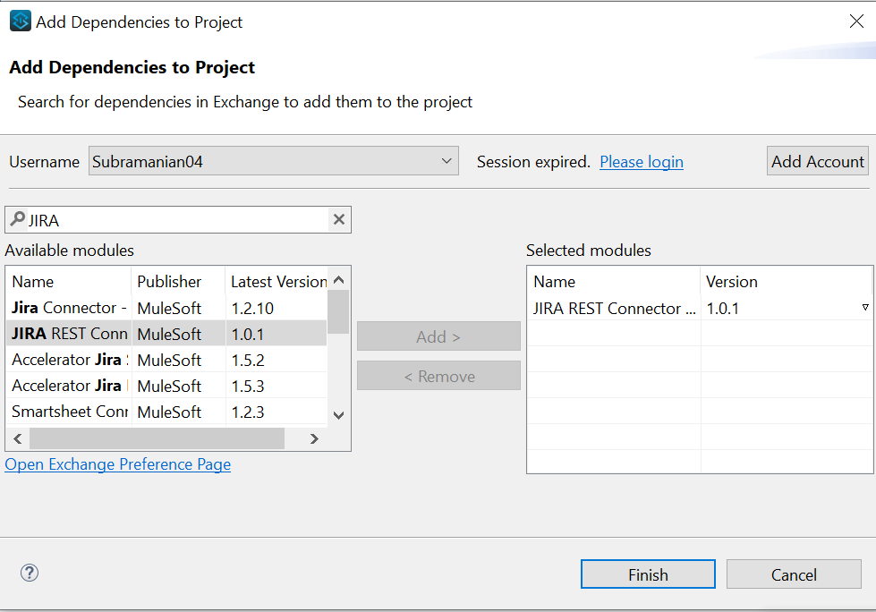 Integrate the "JIRA Connector" into your Mule Palette by searching for it on the exchange. Download and add it to your project for seamless connectivity.