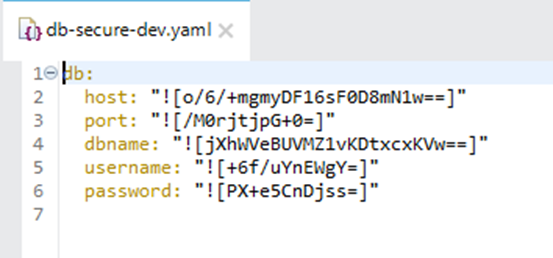 Copy the generated db-secure-dev.yaml into src/main/resources, edit the Database Config as shown