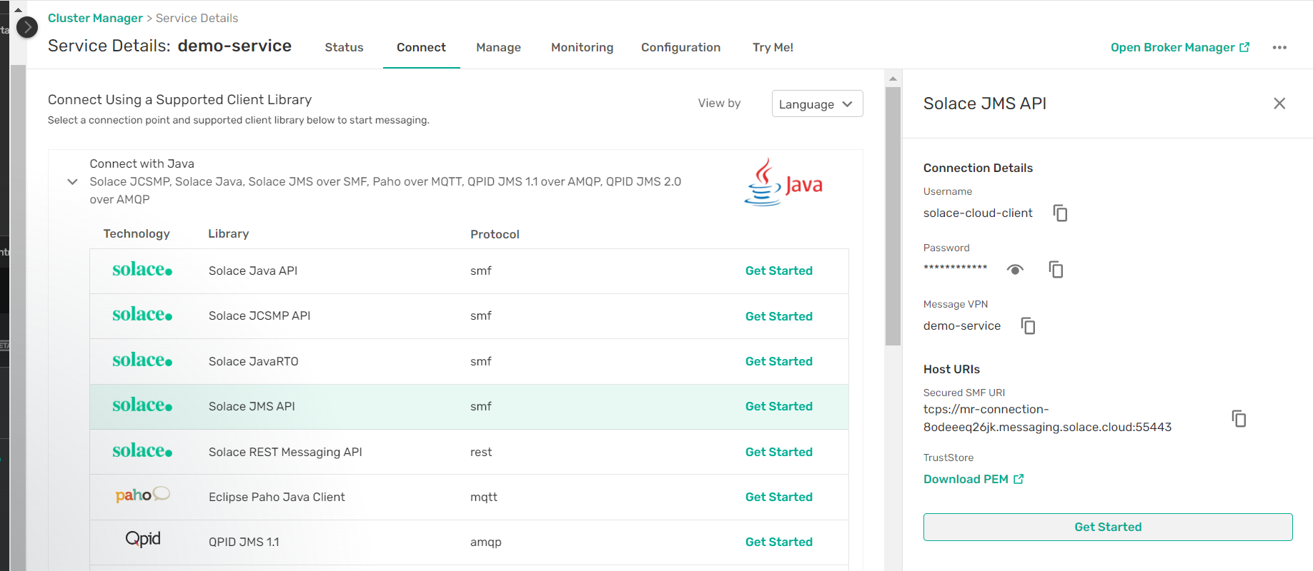 To create the solace config, we need the below details, we can get from Solace JMS API page.