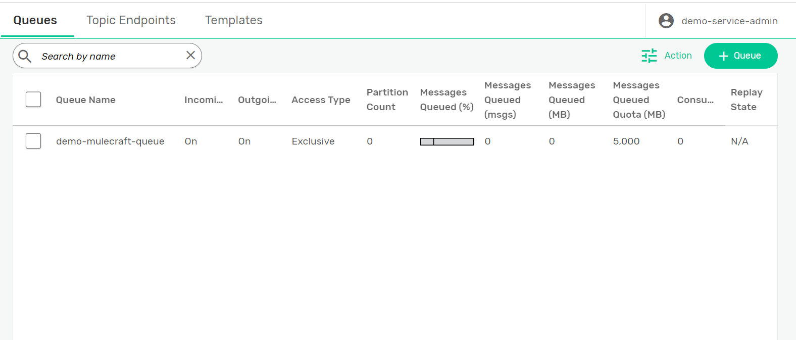 We have to create subscriptions for our 'demo-mulecraft-queue'.
