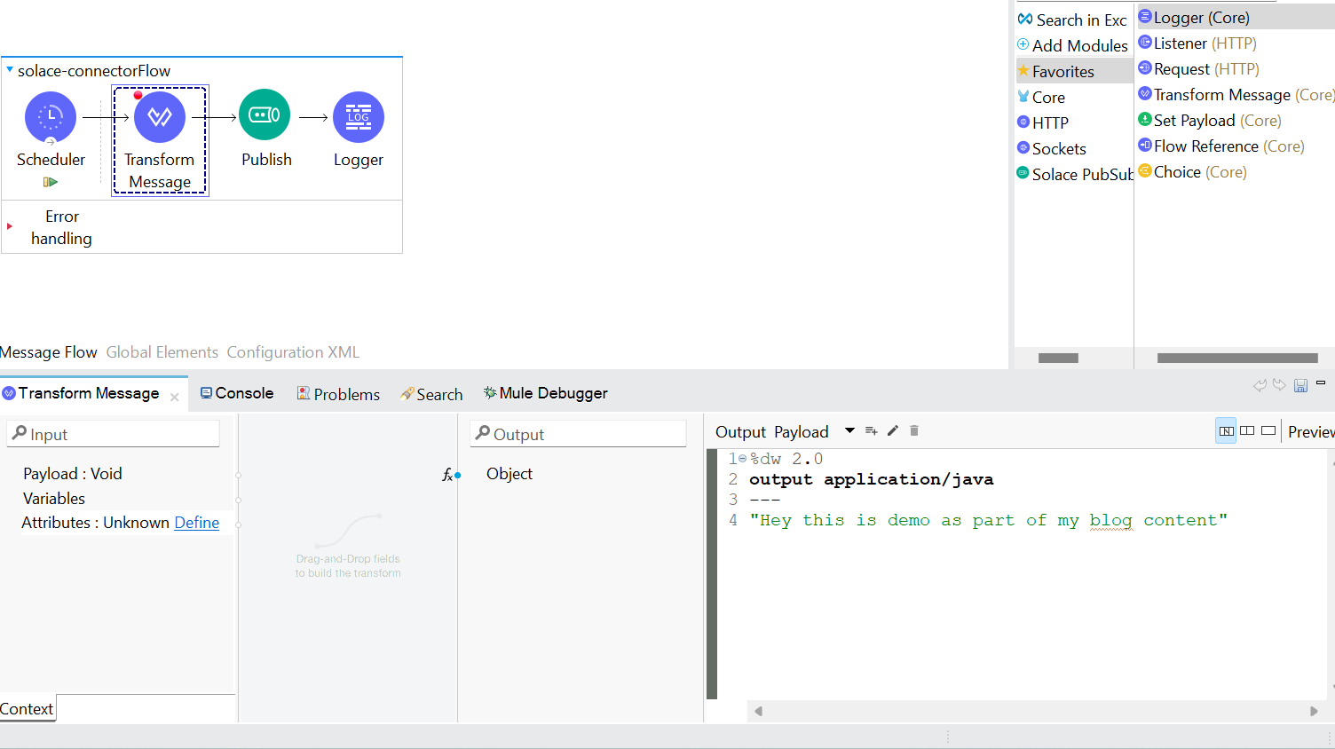 Let’s Add the solace connector. We can add the connector in two different ways.