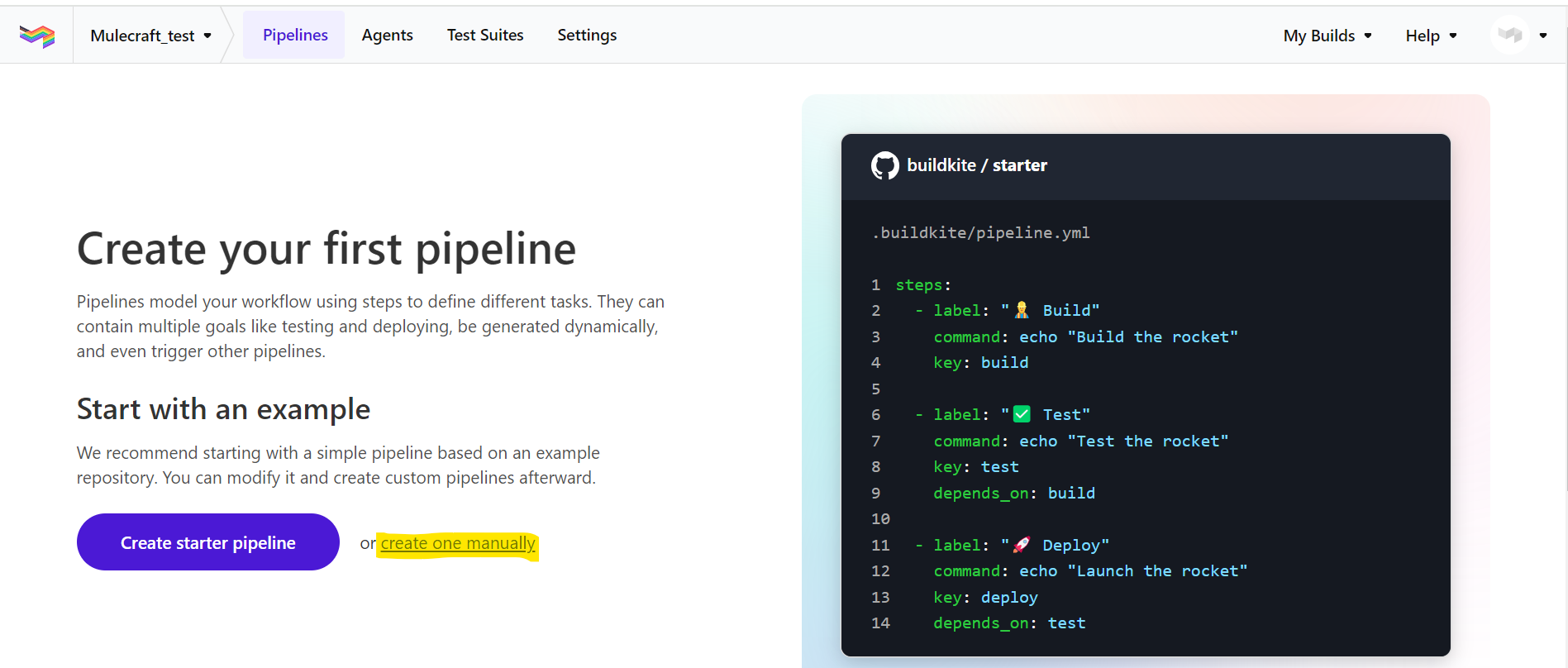 Click the create one pipeline manually.
