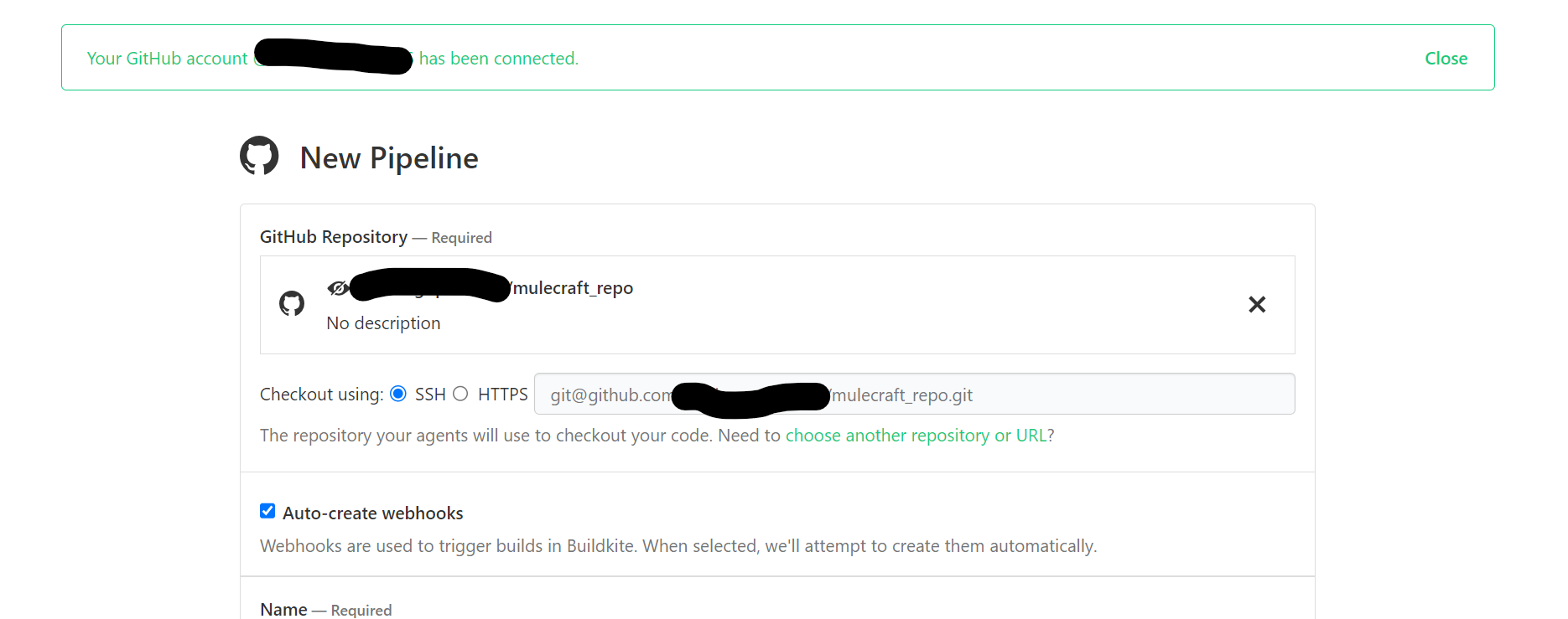Let's connect your repository with your buildkite account.